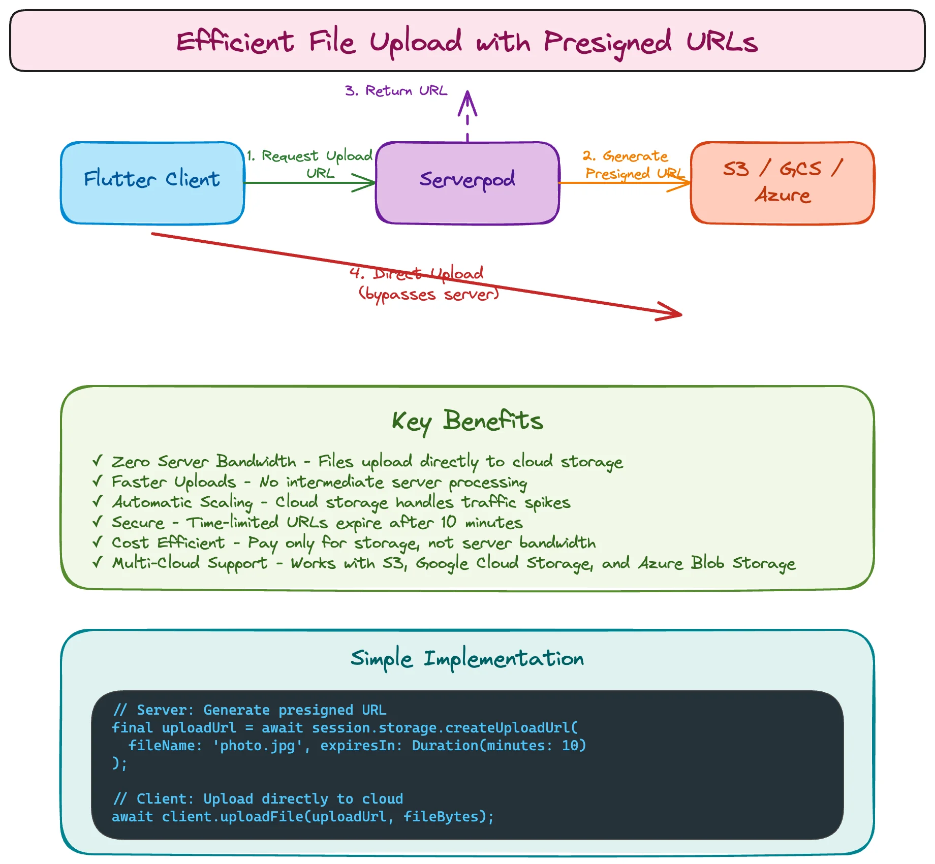// Client uploads directly to cloud storage