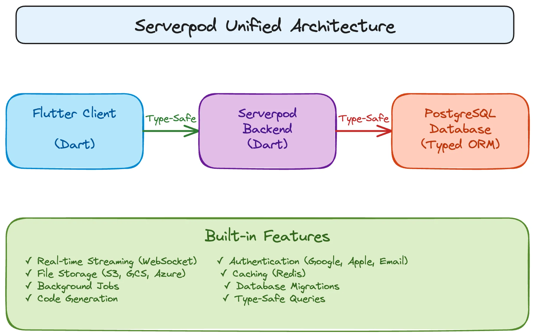 Writing both client and server in Dart eliminates language context switching. The tooling, patterns, and conventions are consistent across the stack. You can move between frontend and backend work without the cognitive overhead of switching ecosystems.