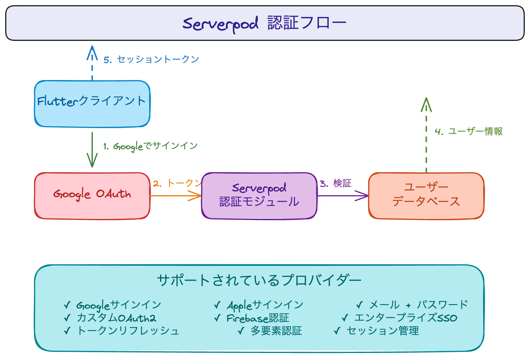 Serverpodには、Google、Apple、メール認証をサポートするserverpod_authモジュールが含まれています。