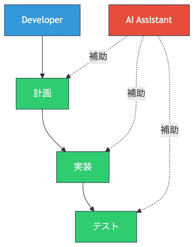 という一連のプロセスを進めます。 AIはその各ステップを補助しますが、実行の主体は人間のままです。
